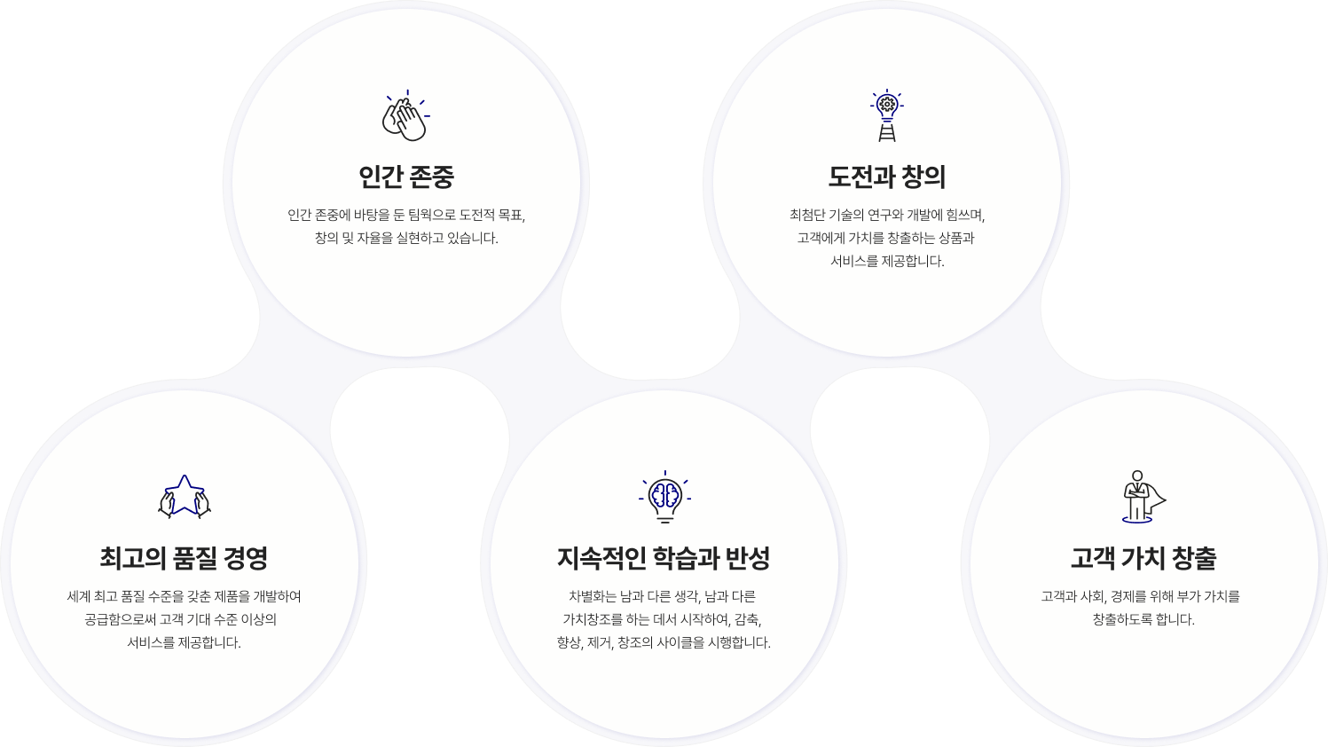 세계 최고 품질 수준을 갖춘 제품을 개발하여 공급함으로써 고객 기대 수준 이상의 서비스를 제공합니다.